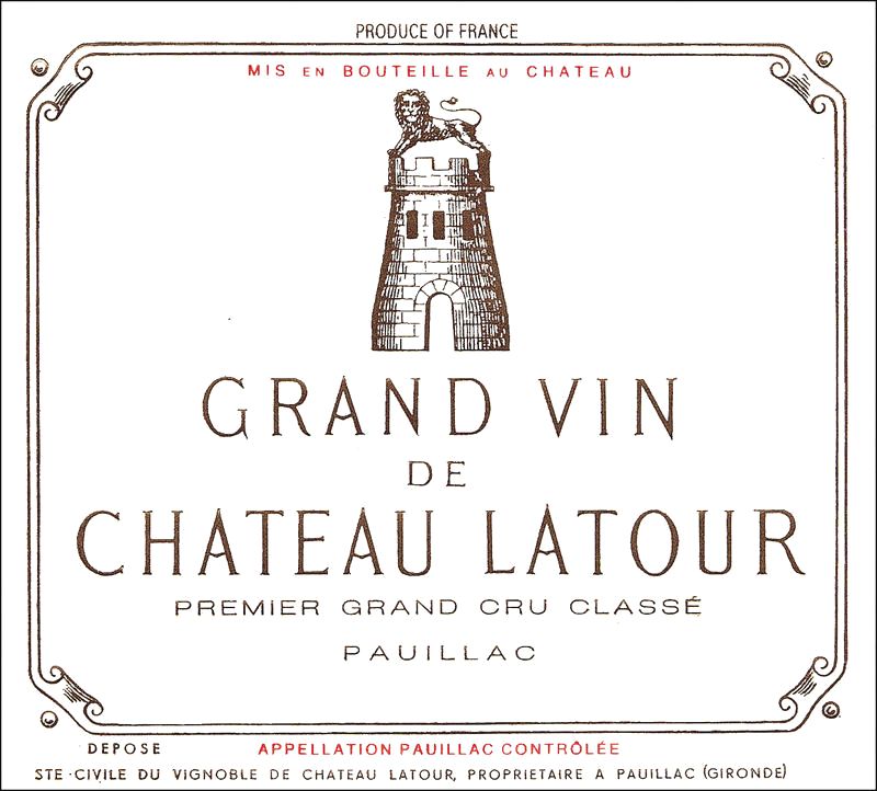 Chateau Latour是波爾多葡萄酒之一,也是世界上最著名的葡萄酒生產商。它位於Pauillac公社的東南角,位於梅多克地區的Saint-Julien邊界。通常對於該地區,赤霞珠在葡萄園中占主導地位,約佔種植面積的80%。梅洛佔其餘部分的大部分,還有少量的品麗珠和小維鐸。盛大的葡萄酒僅由城堡周圍的葡萄園地塊製成,並在1759年的酒莊計劃中展示。 Latour還生產另外兩種葡萄酒:Les Forts de Latour和Pauillac de Latour,兩者均採用較年輕的葡萄藤釀製而成。