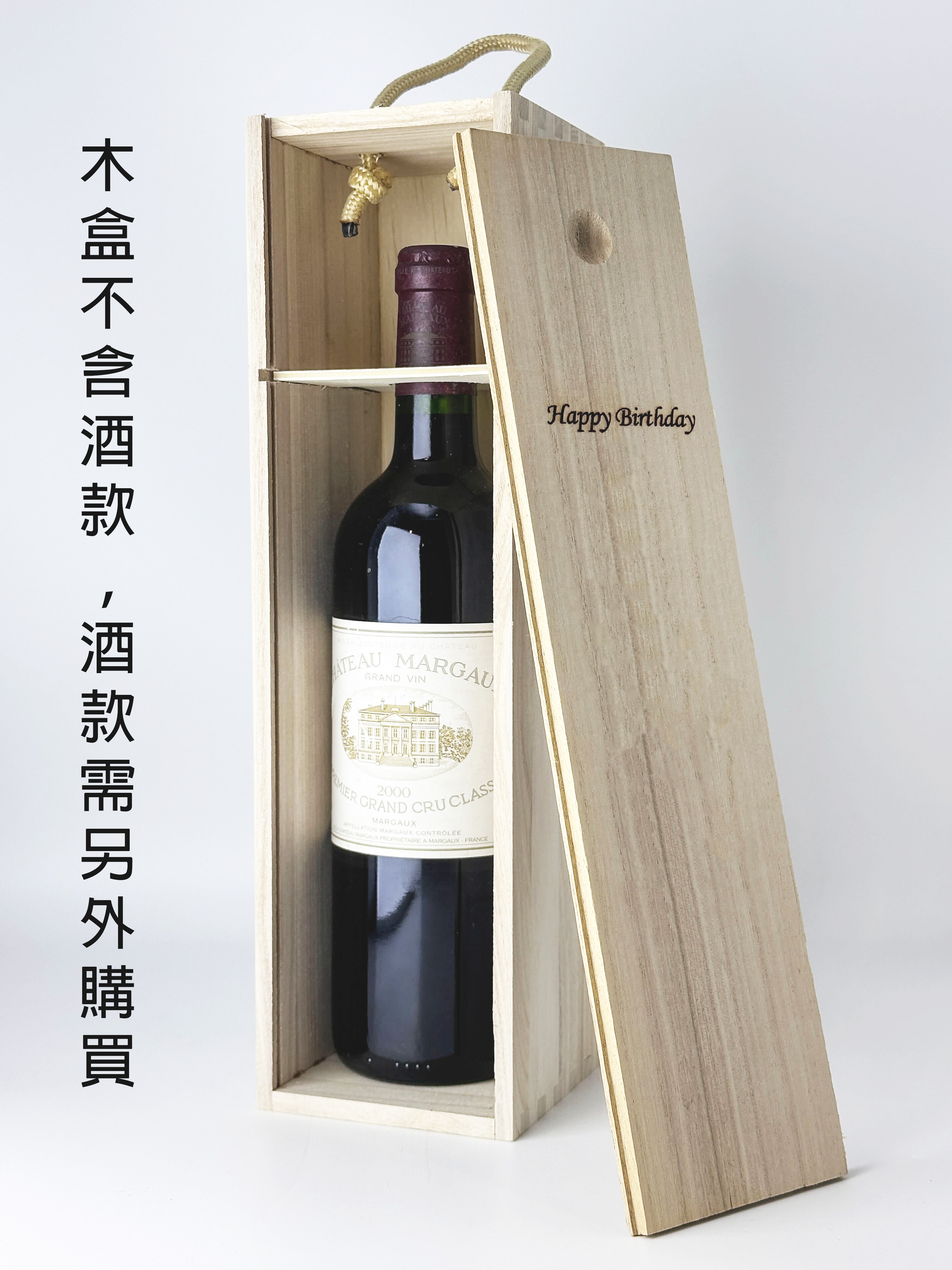 波爾多瓶身最為合適。 此木盒不包酒款。如果與酒一起訂購,則免費雷射雕刻(在訂單備註中輸入文字,CG圖案)。 需時3個工作天